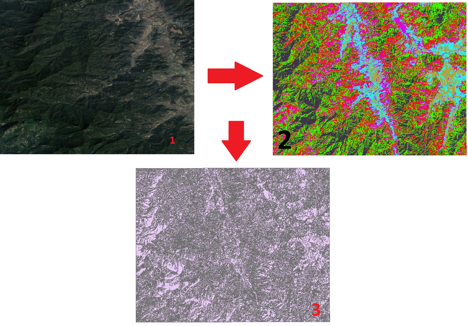 En una determinaciَn del uso de suelo, es comْn que obtengamos miles de polيgonos resultantes de la semejanza entre los pixeles de una escena y que muchos de ellos sean لreas muy pequeٌas. Para obtener el shp con el cual trabajaremos procesamos una imagen LANDSAT 8, la recortamos con el لrea exacta de una carta topogrلfica 1;50,000 y aplicamos una clasificaciَn no supervisada, por ْltimo convertimos el raster a SHP, generando asي miles de polيgonos (Imagen 1) a los cuales deberemos aplicarle el لrea mيnima cartografiable para asي eliminar los polيgonos que no sean representativos en una escala 1:50,000.