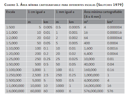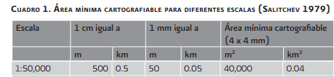 En inventarios serل de 1cm2 en escalas 1:1,000,000 y 1: 250,000 mientras que para escala 1: 50,000 serل de 0.4 cm2 y para 1:20,000 de 0.25 cm2.