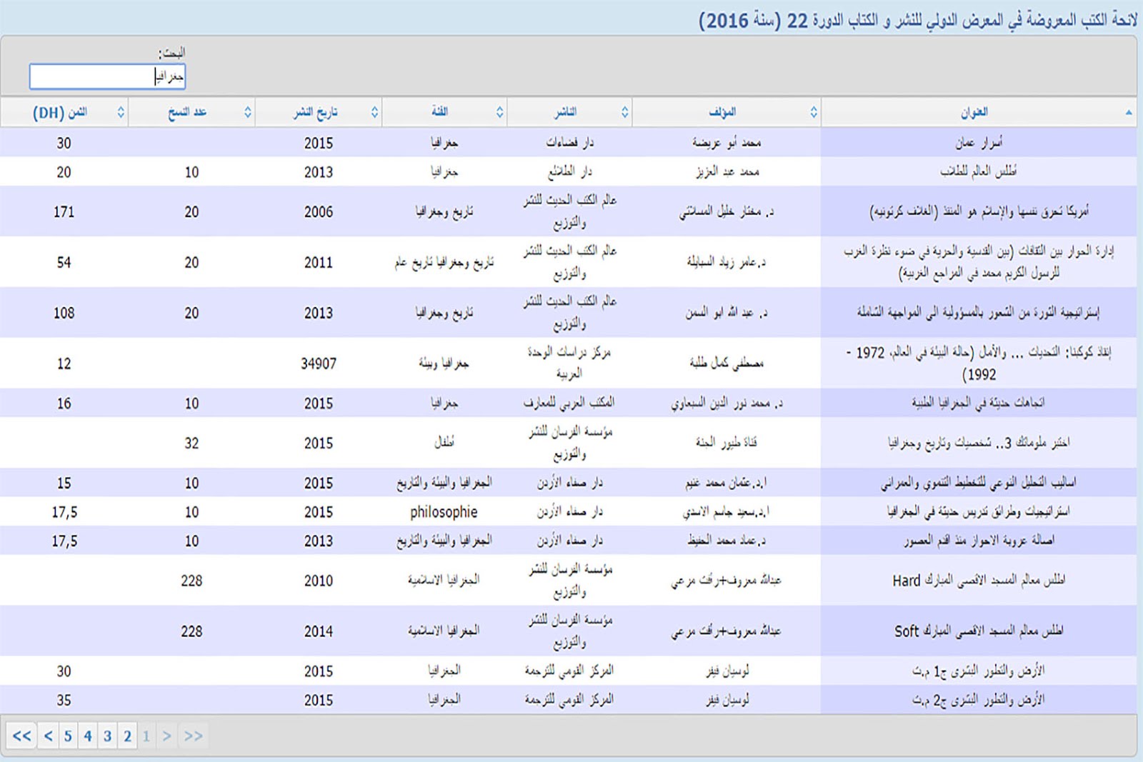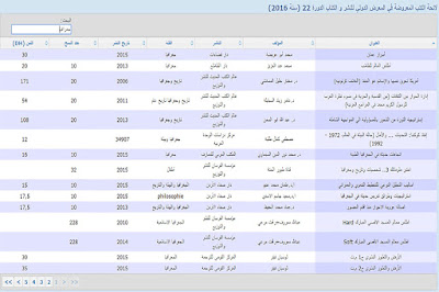 لائحة الكتب المعروضة في المعرض الدولي للنشر و الكتاب الدورة 22 (سنة 2016)