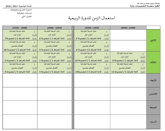 آخر تحديث 02 فبراير 2018 استعمال الزمن للأعمال التطبيقية - الفصل الثاني - الدورة الربيعية 2017-2018 استعمال الزمن للأعمال التطبيقية - الفصل الرابع - الدورة الربيعية 2017-2018 استعمال الزمن للأعمال التطبيقية - الفصل السادس - الدورة...