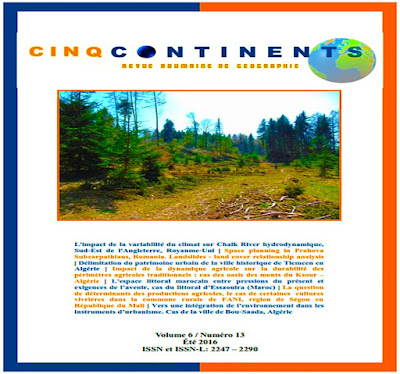 الإصدار الأخير من المجلة الجغرافية الدولية Cinq Continents Revue Roumaine de Géographie عبد المجيد هلال وآخرون - التغيرات المناخية - دينامية الفلاحة -الإرث الحضري- المجالات الساحلية - البيئة - المجالات القروية