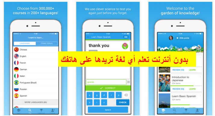 وأخيرا التطبيق يوفر لك موقع ويب لتعلم اللغات والاستفادة من الدورات يمكنك الإطلاع عليه من هنا، وأيضا تحميل التطبيق لنظام الاندرويد والآي او أس .