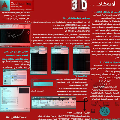 ستلاحظ الان تحول واجهه البرنامج و مساحه الرسم الي ثلاثي الابعاد و تحول المحور الي س و ص و ع ....... x y z