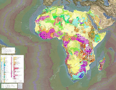 Africa Geology basemap Textured with Hillshade derived from SRTM v1