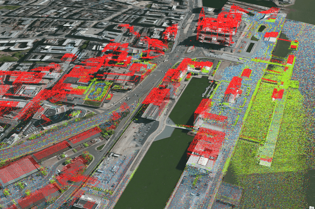LIDAR data coloured by ‘classification’, this has some work to do I think!