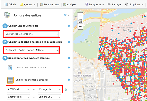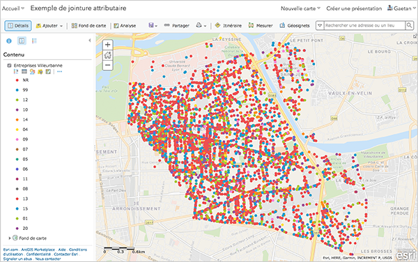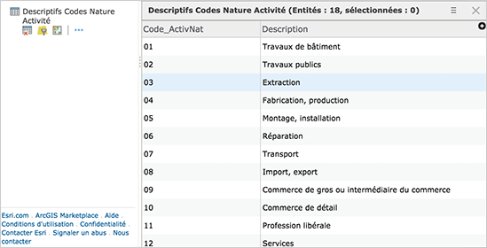 Dans notre exemple, pour les 20 692 commerces de Villeurbanne, la description du code de nature d'activité est maintenant intégré à la couche.