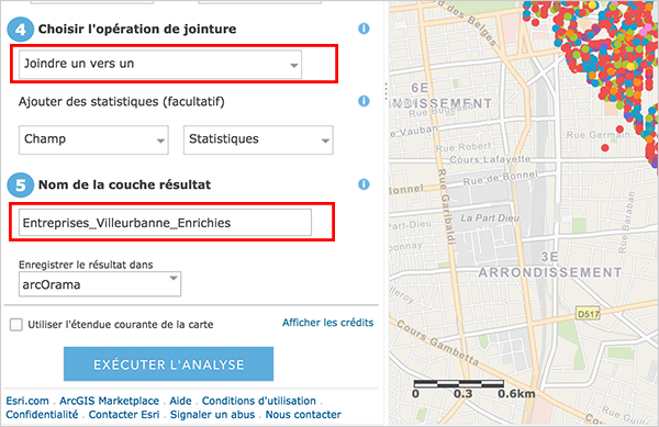 - L'opération de jointure nécessite un traitement sur les serveurs d'ArcGIS Online et, à ce titre, elle consomme des crédits (1 crédit pour 1000 entités jointes). Pour être informé du nombre de crédits qui seront utilisés, cliquer sur le lien "Afficher les crédits".