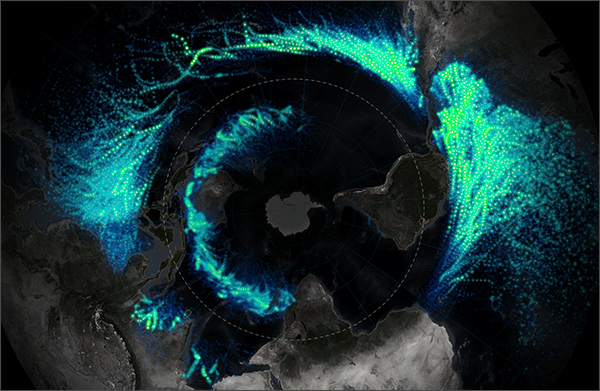 Lors de la dernière mise à jour d'ArcGIS Online en juin, Esri a introduit (en version beta) un nouveau fond de carte nommé World Imagery Firefly. Il s'agit d'une déclinaison, avec des couleurs plus ou moins désaturées, du fond de carte World Imagery que vous utilisez régulièrement dans vos cartes et vos scène. L'idée est de vous proposez une imagerie en dégradé de gris pour les petites échelles (mondiales, continentales,...) et de retrouver progressivement aux grandes échelles (nationales, régionales, locales,...) les couleurs originales de l'imagerie. Le fond World Imagery Firefly est particulièrement adapté aux cartographies nécessitant le contenu d'un fond d'imagerie mais qui superposent des couches ayant des symboles assez lumineux (d'où le terme firefly, "luciole" en français).