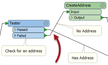 I could avoid that by reorganizing my workspace so that the CreateAddress custom transformer is lower down the screen. But in 2016.1 I can simply switch the order of the output ports on the Tester transformer: