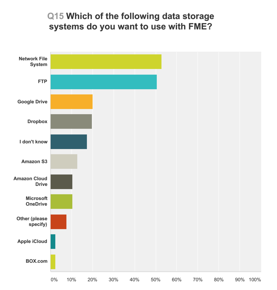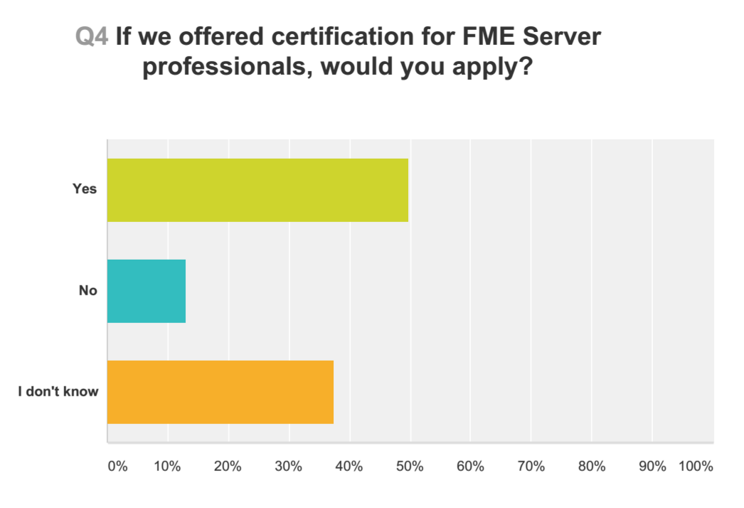 With last year’s survey, we received feedback from 11% of all FME Server accounts. You told us what you like, dislike, and many things in between. First, I want to thank you for your time and sharing your insight. Second, I am again going to ask you to spend 10-15 minutes and take this year’s: