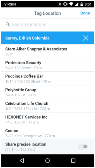 No, with Twitter, I either can choose a named location from the list, or switch to sharing my precise location taken with GPS.