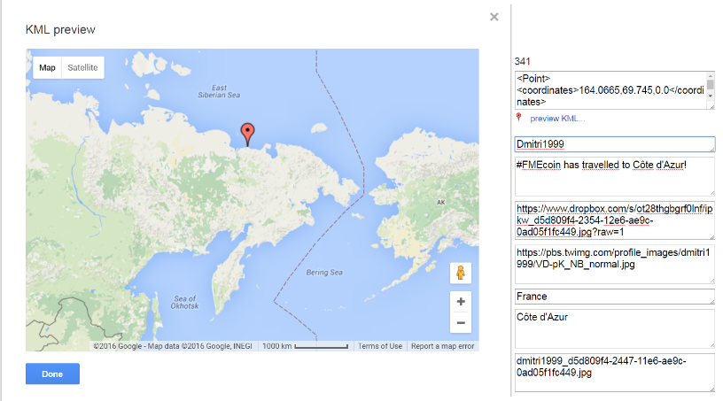 The second component publishes entries that passed moderation to the Photos Google Fusion table. This table, in a map mode, is what you see on our Contest Page.