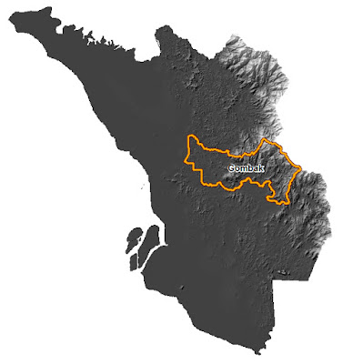 Setting ni berguna bila anda nak produce output raster mengikut shape sempadan tertentu, seperti konsep Clip. Contohnya saya nak produce raster Slope dalam sempadan daerah Gombak sahaja, seperti gambar di bawah :-