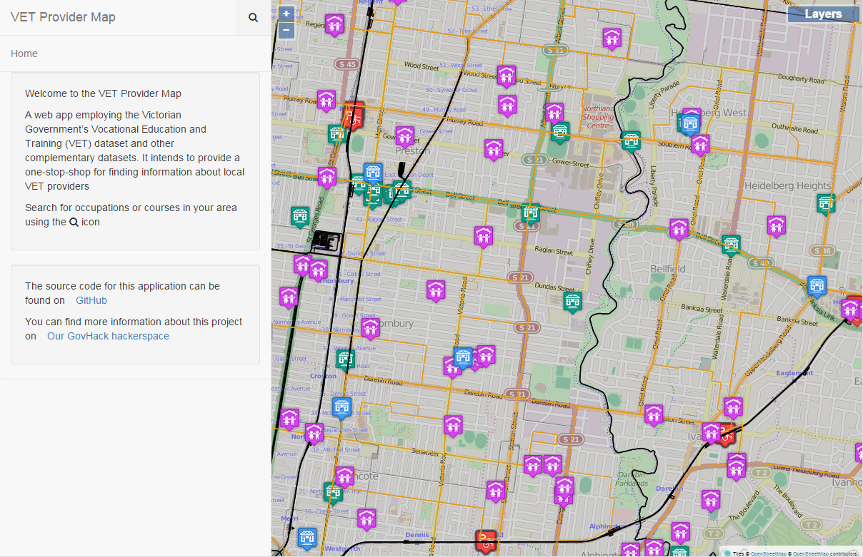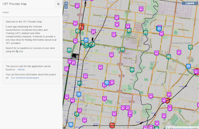 The end result, is our GovHack 2015 entry: The VET provider map.