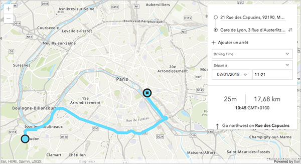 Actuellement en beta, un widget de calcul d'itinéraires (Direction Widget) arrive dans l'API 4.6 pour vous permettre de développer des applications dans lesquelles les utilisateurs peuvent spécifier différentes localisations et demander le calcul de l'itinéraire optimiser entre ces différents points. Par défaut le widget fonctionne sur le service de calcul d'itinéraire d'ArcGIS Online mais vous pouvez exploiter n'importe quel service ArcGIS Enterprise configuré avec Network Analyst.