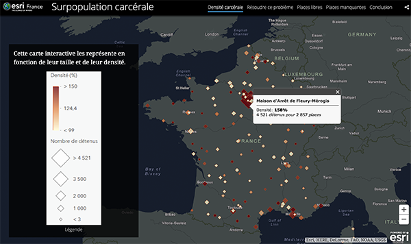 Après cinq jours de protestation des surveillants pénitentiaires, un projet d'accord est sorti des négociations, prévoyant notamment la création de 1 100 emplois. La question du nombre de détenus par établissement reste cependant sur la table. Pour mieux comprendre cette problématique, en particulier sous l'angle géographique, mon collègue Florent Giauna a réalisé cette Story Map qui décrit la répartition des établissements sur le territoire français, leur capacité et leur taux d'occupation.