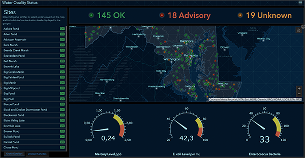 • Tableau de bord pour le suivi de la qualité de l'eau à Baltimore