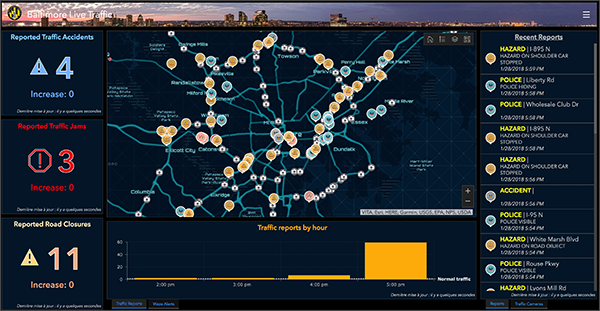 Il est important de rappeler qu'Operations Dashboard est un modèle d'application configurable gratuit inclus dans votre portail ArcGIS. Tous ces tableaux de bord ont été créés interactivement par simple paramétrage, aucun développement n'a été nécessaire.
