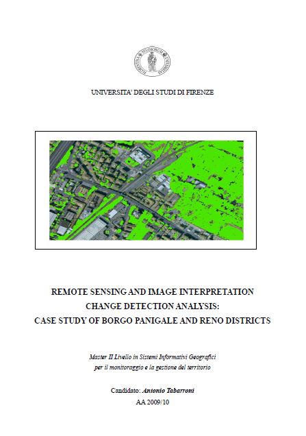 REMOTE SENSING AND IMAGE INTERPRETATION CHANGE DETECTION ANALYSIS: CASE STUDY OF BORGO PANIGALE AND RENO DISTRICTS Master II Livello in Sistemi Informativi Geografici per il monitoraggio e la gestione del territorio Candidato: Antonio...