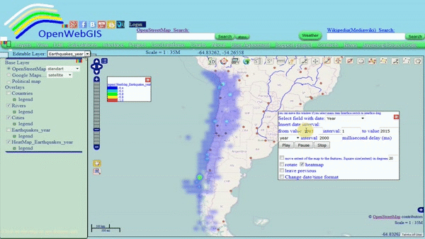 Create an animated heat map of the number of earthquakes using the menu item "View->Time Line" as it is shown in Figure 6.