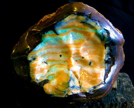 This amazing opal was found on the 24th of February 2005, 81 kilometres north west of Quilpie at the Bill Mine, Australia. The Horizon was found at a depth of 17 feet below the surface, under the desert sandstone. The Horizon is on display in our store window in Katoomba. This is a very rare piece of museum quality.