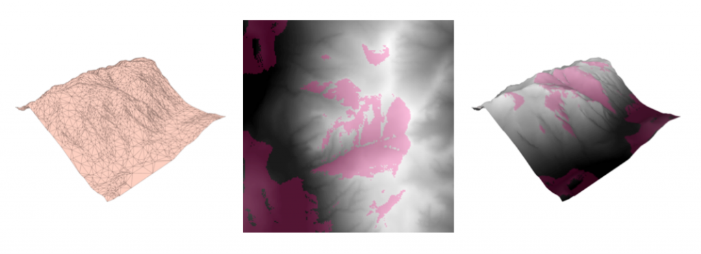 Generating a surface model and a raster, and overlaying them to provide a useful output.If we generate a series of rasters changing the elevation of the observer, we can even get a nice animated GIF: