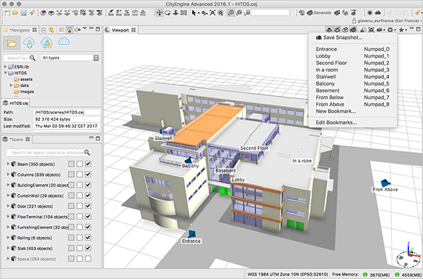 La première étape consiste à préparer la scènes 3D que vous souhaitez proposer en Réalité Virtuelle. Pour cela, à l'aide de CityEngine, vous utiliserez les outils que vous connaissez déjà pour importer vos données 3D (Géodatabases, Shapefiles, obj, fbx, kml/kmz, dae, osm, ...) ou générer vos modèles 3D à l'aide du moteur de règle de l'application.