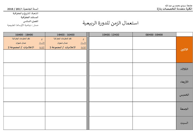 آخر تحديث 02 فبراير 2018 استعمال الزمن للأعمال التطبيقية - الفصل الثاني - الدورة الربيعية 2017-2018 استعمال الزمن للأعمال التطبيقية - الفصل الرابع - الدورة الربيعية 2017-2018 استعمال الزمن للأعمال التطبيقية - الفصل السادس - الدورة...