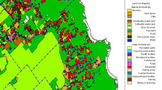 حيث يمكن تحديد نوعية استخدام الأرض سواء كان استخدم سكنى أو صناعى أو تجارى أو خدمى عن طريق جمع البيانات عن استخدام الأرض واعطاء كل أستخدام لوناً مختلفاً ومتفق عليه أن للسكنى اللون الأصفر والتجارى اللون الأحمر وهكذا ثم اظهار ذلك على الخرائط لمعرفة استخدام كل قطعة أرض