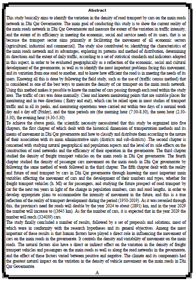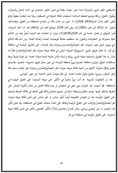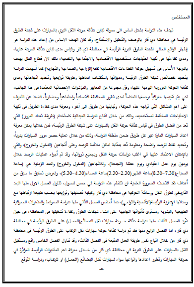 [h=1]تباين كثافة النقل بالسيارات على الطرق الرئيسة في محافظة ذي قار [/h]