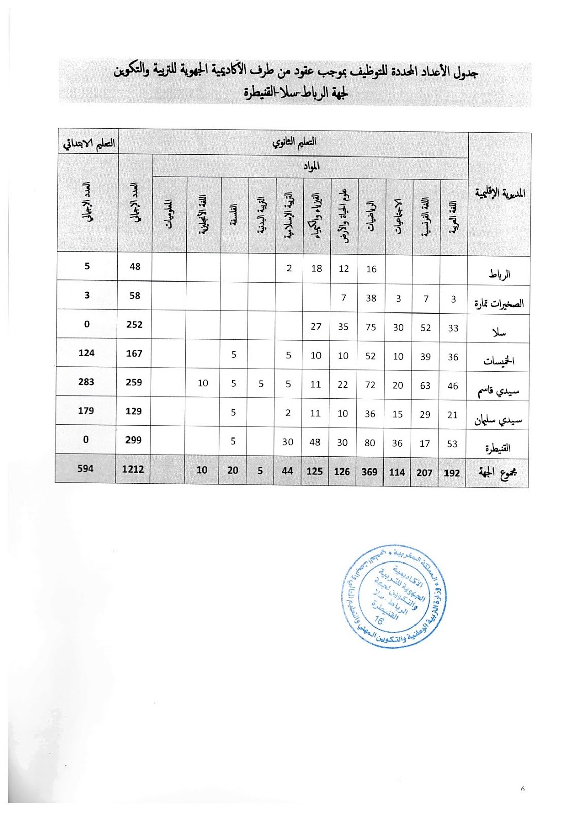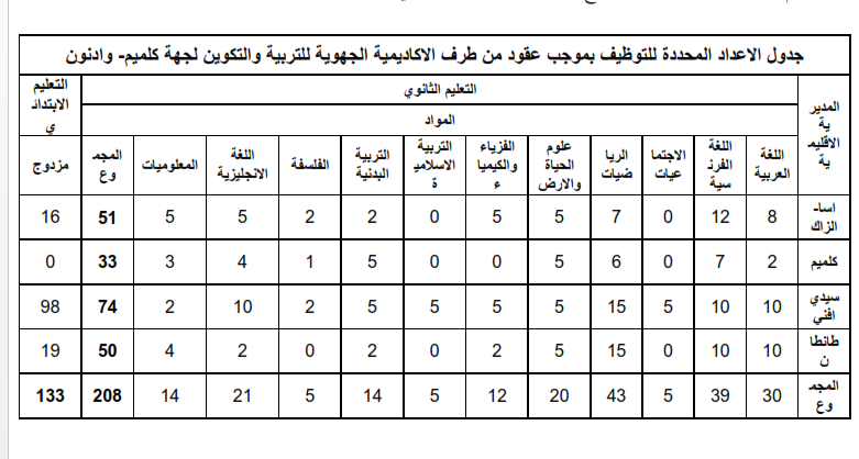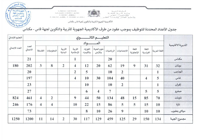 [h=3]جدول الأعداد المحددة للتوظيف بموجب عقود من طرف الأكاديمية الجهوية للتربية والتكوين لجميع الأكاديميات والجهات آخر أجل هو 21 يونيو 2017[/h]