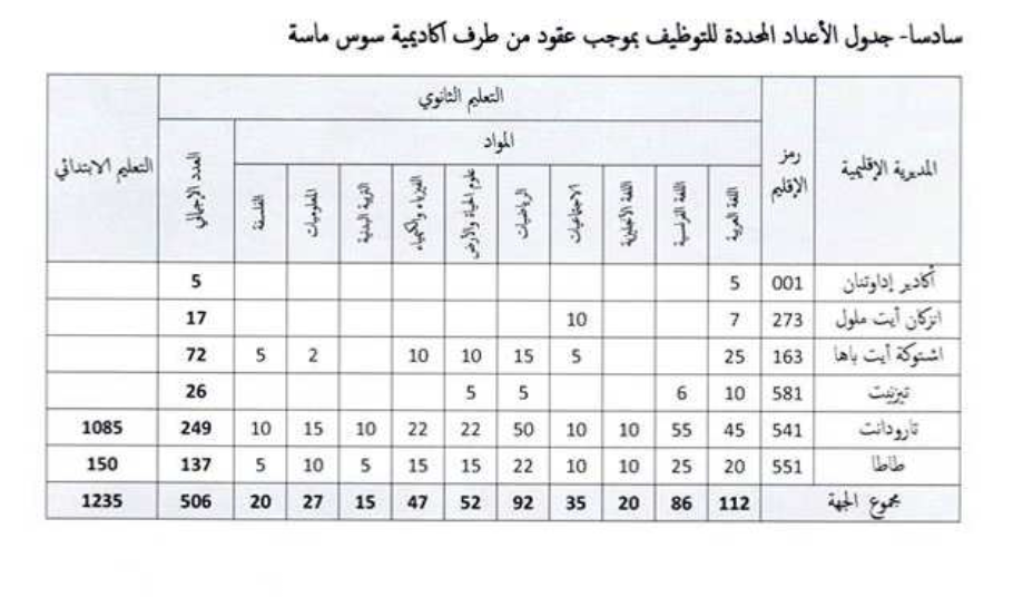 على غرار باقي المؤسسات العمومية وإعمالا بأحكام المقرر المشترك رقم 7259 بتاريخ 7 أكتوبر 2016 بين وزارة التربية الوطنية والتكوين المهني ووزارة الاقتصاد والمالية، ستقوم الأكاديميات الجهوية للتربية والتكوين بعملية توظيف بموجب عقود ستشمل 11000 منصبا بالإضافة إلى المناصب المخصصة للقطاع في قانون المالية لسنة 2016.
