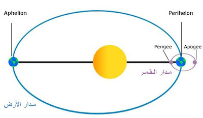 الأجسام الفضائيةالتي تتحرك في مدارات حول الأرض، بما في ذلك القمر، لا تبقى دائما على مسافة واحدة من الأرض. أحيانا تكون أقرب، وتارة أخرى تكون أبعد ما يكون.تسمى النقطة التي يكون فيها الجسم الفضائي أقرب ما يكون للأرض Perigee.والنقطة التي يكون عندها أبعد ما يمكن Apogee.بالنسبة للكواكب، النقطة التي تكون عندها أقرب ما يكون للشمس تسمىPerihelion.والنقطة الأبعد تسمى Aphelion. الأرض تكون في أقرب نقطة إلى الشمس في أثناء الصيف في نصف الكرة الشمالي. ويسمى الوقت الذي يستغرقه الجسم الفضائي للدوران خلال مداره مرة واحدة "فترة مدارية". على سبيل المثال، الأرض لديها فترة المدارية عام واحد. الميل هو الزاوية بين المستوى الذي يقع به المدار والمستوى الذي يقع به خط الإستواء الأرضي.