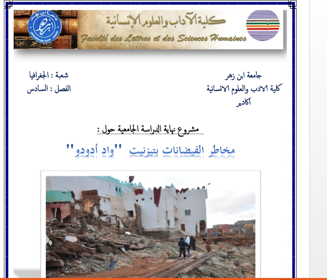 مشروع نهاية الدراسة الجامعية: مخاطر الفيضانات بتيزنيت ''واد أدودو المغرب PDF