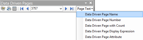 Kebiasaannya bila anda nak cetak map yang ada layer Indeks ni, kat teks tajuk map tu mesti ada dinyatakan ID Indeks atau nombor Indeks. ID ni anda boleh jana secara automatik di atas peta yang anda nak hasilkan tu menggunakan Data Driven Pages. Terdapat beberapa pilihan teks yang anda boleh pilih dari menu Page Text dalam toolbar Data Driven Pages seperti contoh di bawah ni.