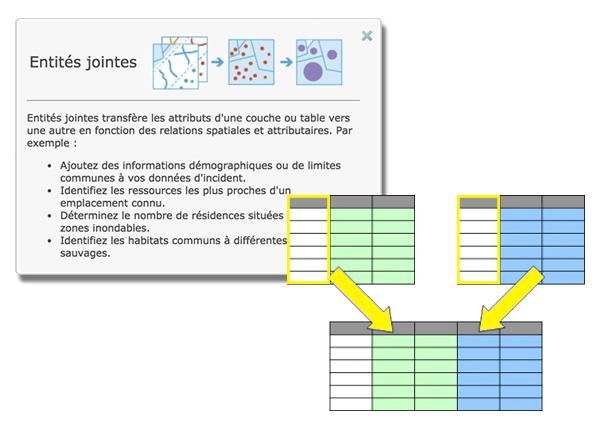 ArcGIS Online est une plateforme SIG qui propose des capacités de gestion et d'analyse de données de plus en plus complètes. Par exemple, vous pouvez réaliser des opérations classiques dans la base de données et dans les SIG notamment des jointures entre une couche et une table. A l'aide d'un attribut commun, vous pouvez ainsi mettre en correspondance les enregistrements de la table avec les entités de votre couche pour enrichir cette dernière de nouveaux attributs issus de la table jointe.