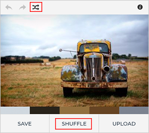 Vous noterez qu'il est également possible de modifier le jeu de couleur manuellement, simplement en cliquant dessus. - Vous pouvez ensuite charger votre propre image pour exploiter des tonalités de couleurs qui correspondent à l'ambiance que vous souhaitez. Pour cela, cliquer sur le bouton "Upload" puis sélectionner l'image de votre choix.