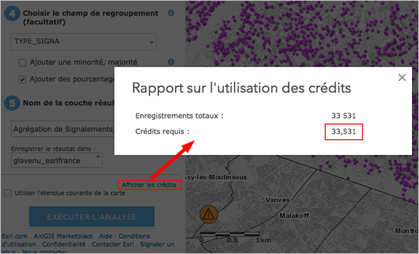 - Comme toutes les fonctions en ligne d'analyse, ces dernières consomment des crédits. Vous pouvez afficher les crédits qui seront débités en cliquant sur le lien "Afficher les crédits". Ici, pour 33531 entités, 33 crédits seront nécessaires.