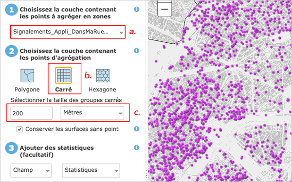b. Sélectionner une agrégation par carré (ou par hexagone)