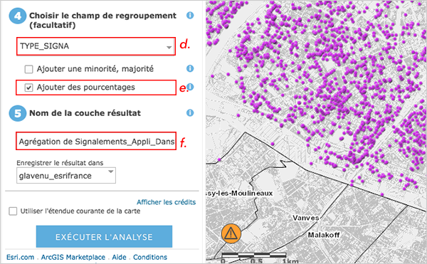 ArcGIS Online propose, dans ses outils d'analyse en ligne, une fonction d'agrégation permettant de calculer des densités d'entités selon une couche d'entités surfacique existante (par exemple un découpage administratif ou statistique) mais également selon un maillage régulier. Je vous propose de voir comment utiliser cet outil et comment exploiter les résultats qu'il fournit.