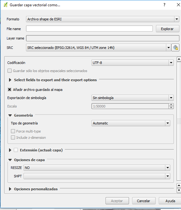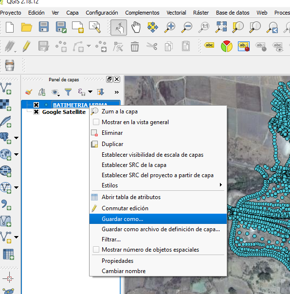 Para guardarlo como shp, sólo indicamos click derecho-> Guardar como: