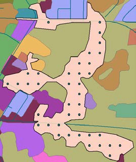 Figure 4: Clip results. Note many sampling locations appear near or on the parcel border.