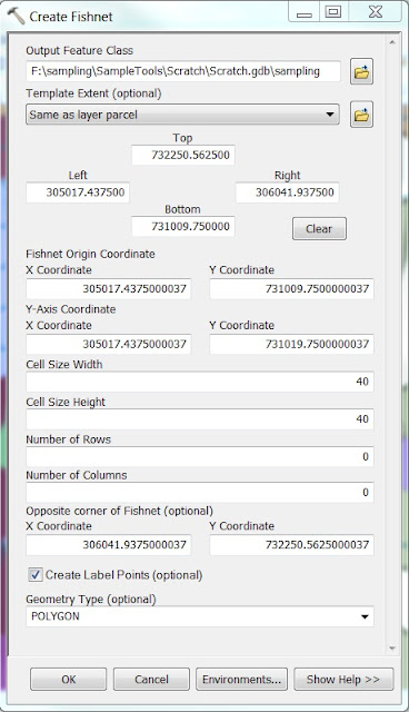 This tutorial describes how to use the fishnet, clip, and optionally the buffer tools in ArcGIS 10 to generate a regularly-spaced grid of sampling points inside a polygon layer. The steps below should work with any license level: ArcGIS for Desktop Basic (ArcView), ArcGIS for Desktop Standard (ArcEditor), and ArcGIS for Desktop Advanced (ArcInfo).