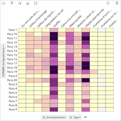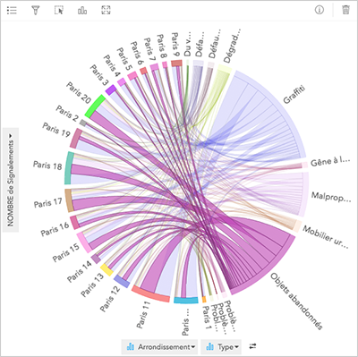 L'intérêt d'une application comme Insights for ArcGIS est de pouvoir combiner des représentations cartographiques et tabulaires avec une multitude de déclinaisons graphiques à l'aide de diagrammes. Cette version 2.0 introduit 4 nouveaux types de diagramme: