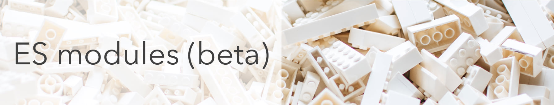 Pour plus d'infos, vous consulterez la rubrique suivante du guide sur les modules ES pour connaître les étapes complètes nécessaires à l'utilisation de ces modules de l'API. Il existe également des exemples d'applications disponibles qui illustrent les concepts de base pour l'intégration des modules avec divers frameworks et outils.