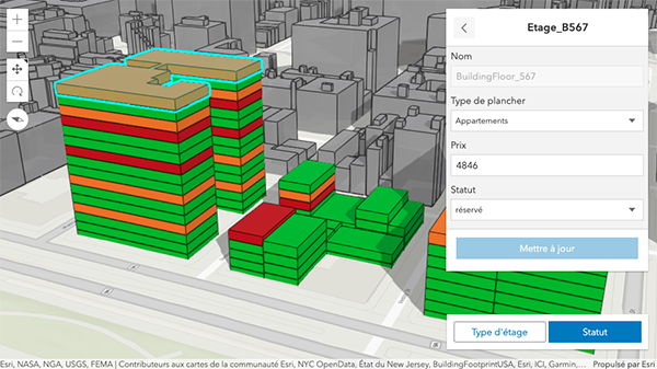 Plus tôt cette année, Esri avait introduit des capacité de mise à jour sur les couches d'entités 3D. Cet effort se poursuit dans cette version en ajoutant la prise en charge de nouveaux types de couches et des aides interactives.
