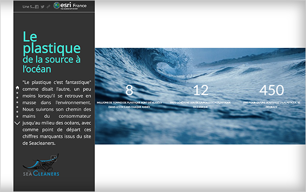 Partant de ce partenariat autour de cette problématique éminemment géographique, Esri France avait décidé d'en faire le sujet de base pour le concours "Les 24 heures du SIG". L'objectif, pour les 3 équipes d'étudiants, était de construire une narration cartographique expliquant les mécanismes et les enjeux autour de cette pollution des océans par nos déchets plastiques. J'ai dons retenu cette semaine la Story Map qui a remporté le premier prix du concours.
