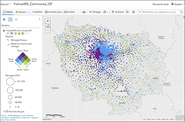 Un nouveau type de rendu fait son apparition dans la visionneuse de carte pour vous permettre de visualiser les relations potentiels entre 2 variables numériques (quantitatives).