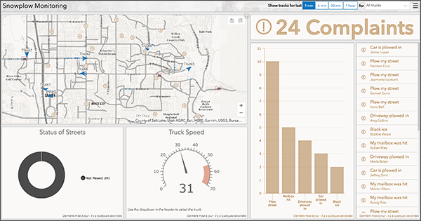 Il est important de rappeler qu'Operations Dashboard est un modèle d'application configurable gratuit inclus dans votre portail ArcGIS. Tous ces tableaux de bord ont été créés interactivement par simple paramétrage, aucun développement n'a été nécessaire.