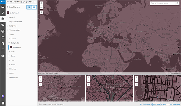 Depuis plusieurs années maintenant, la plateforme ArcGIS propose des fonds de carte vectoriels mondiaux que vous pouvez consommer dans la plupart des applications et SDKs ArcGIS. Un des nombreux avantages des fonds de carte vectoriels est de pouvoir leur appliquer un style. Ce style permet de personnaliser le contenu et l'aspect du fond de carte pour répondre aux besoins de votre application. Vous pouvez ainsi de ne pas afficher certains éléments du fond de carte à certaines échelles ou tout simplement de modifier leur apparence (couleur, contour, symbole, police de texte, ...). Une fois personnalisé, le style est enregistré dans vos contenus et peut être utilisé dans une carte, une scène ou une application spécifique ou être ajouté à la liste des fonds de carte de votre organisation.